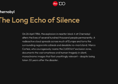 Marco Cortesi documenta l’odierna zona di alienazione di Černobyl lavorando con una Leica M Monochrom e un obiettivo Leica Summilux-M 35 f/1.4 messi a disposizione da Leica Camera Svizzera per realizzare questo progetto.