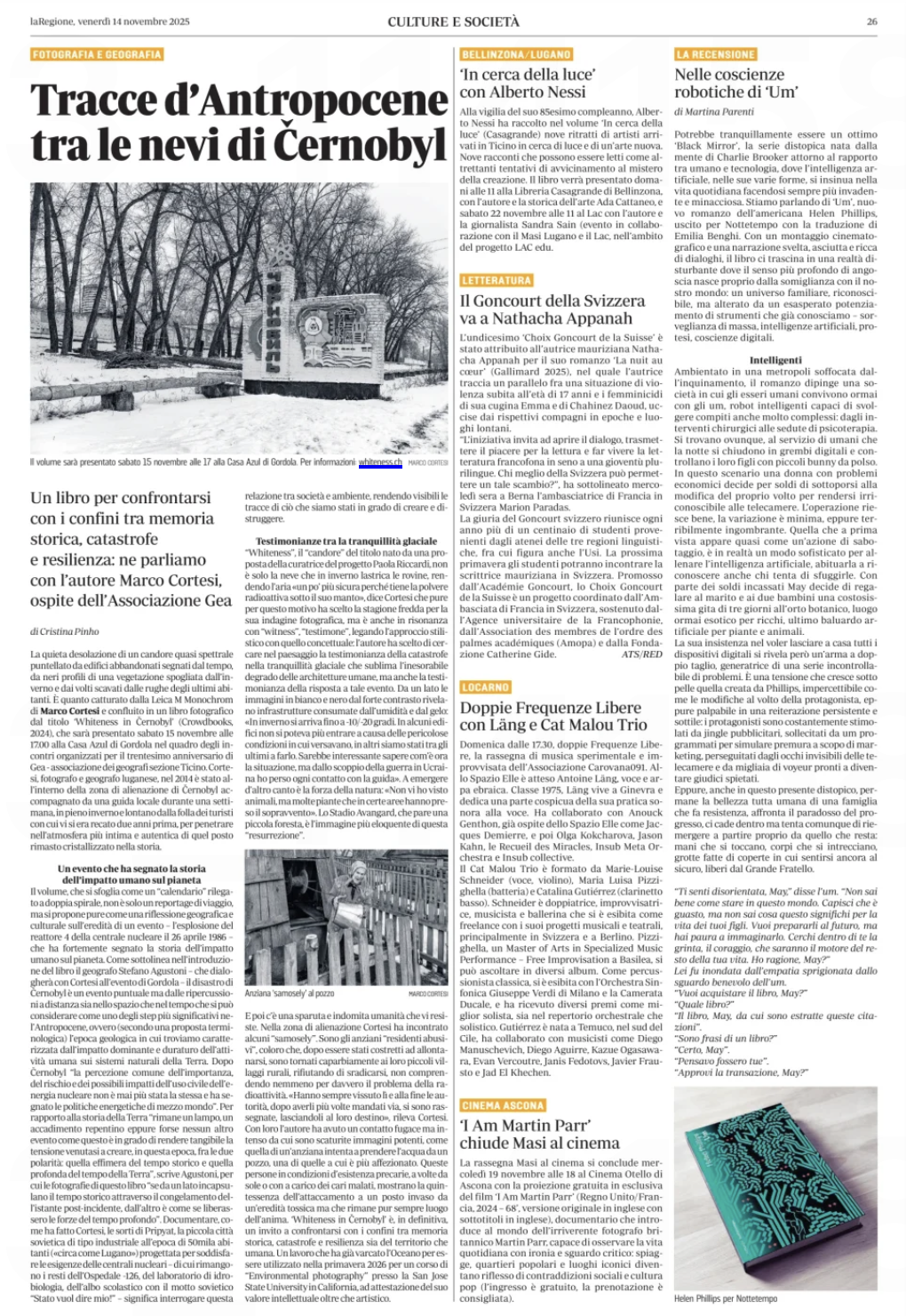 - LaRegione: Tracce di Antropocene fra le nevi di Černobyl (14 novembre 2025)